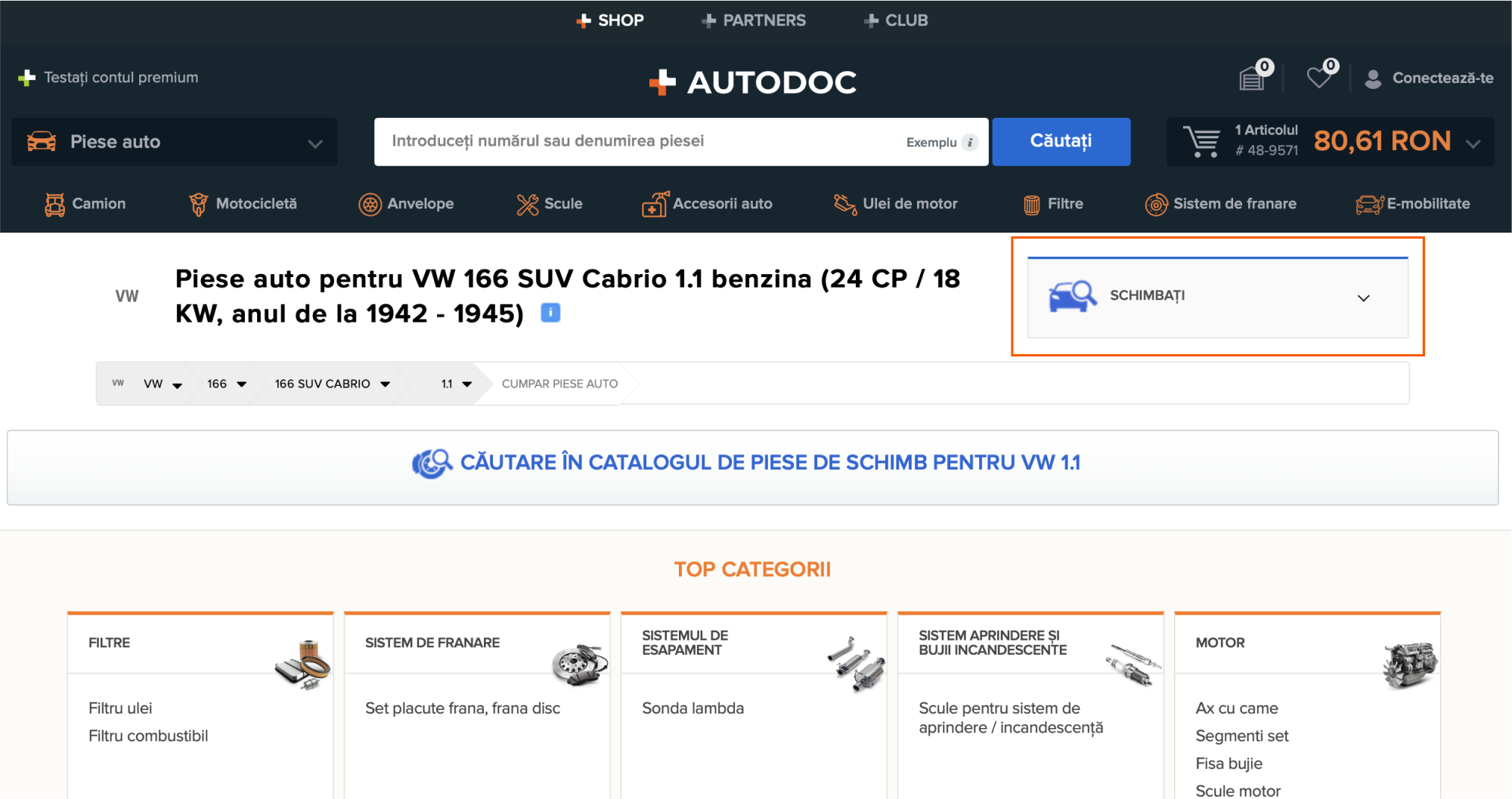Dacă ai comis o eroare atunci când ai introdus datele autovehiculului, aceasta poate fi corectată pe pagina de catalog, executând clic pe „SCHIMBAȚI”.