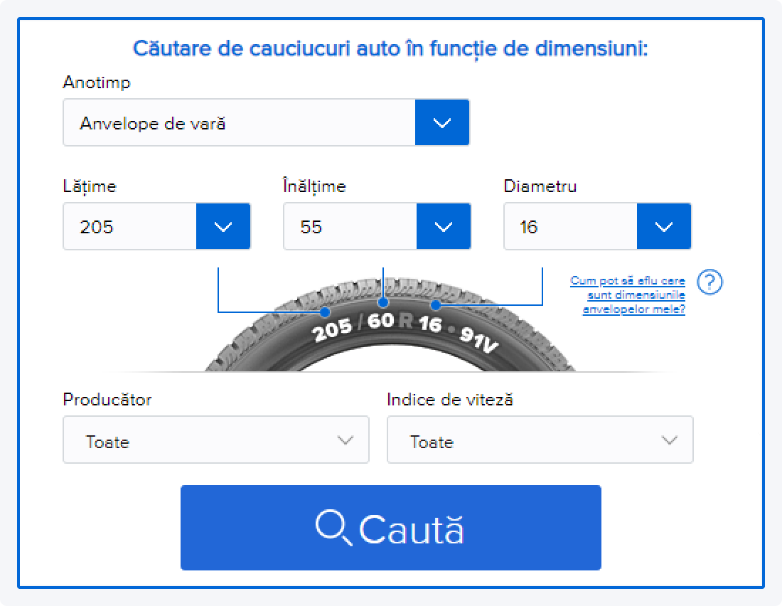 Vă rugăm să atrageți atenția la dimensiuniile anvelopelor din uzină la selectarea anvelopelor: