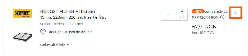 Pentru introducerea modificărilor la articolele adăugate, te rugăm să-ți accesezi coșul de cumpărături.![]()