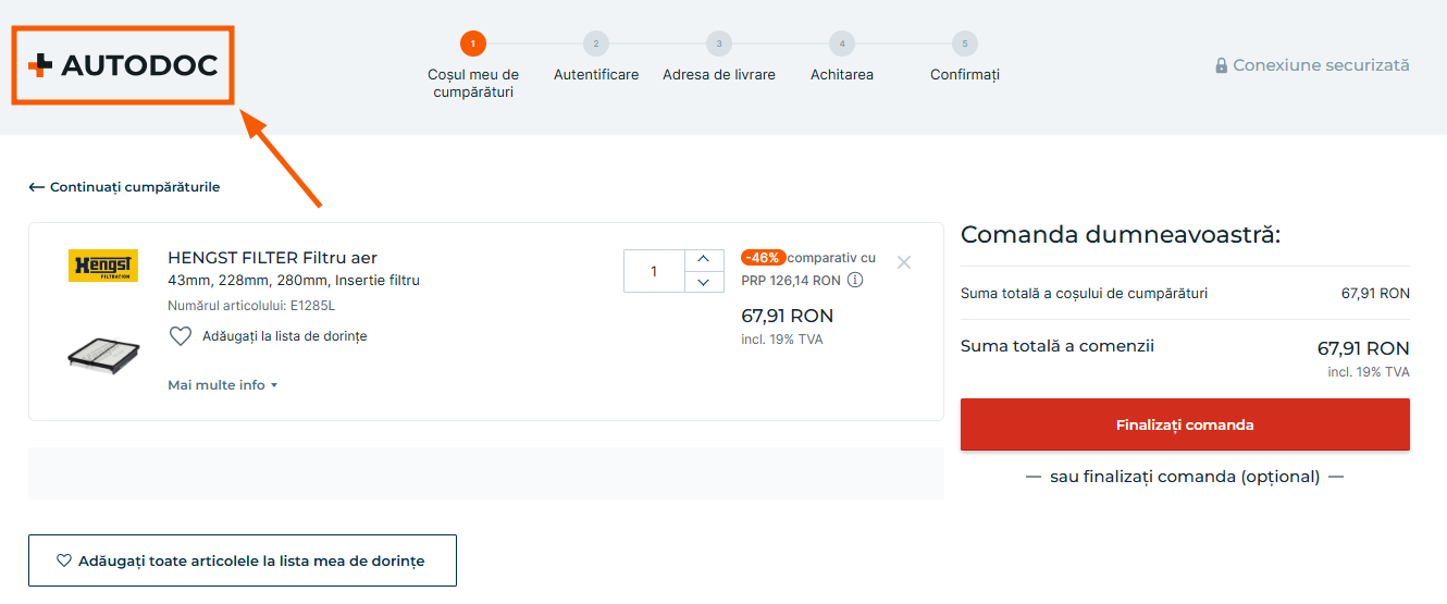 - fă clic pe logoul AUTODOC pentru a continua cumpărăturile